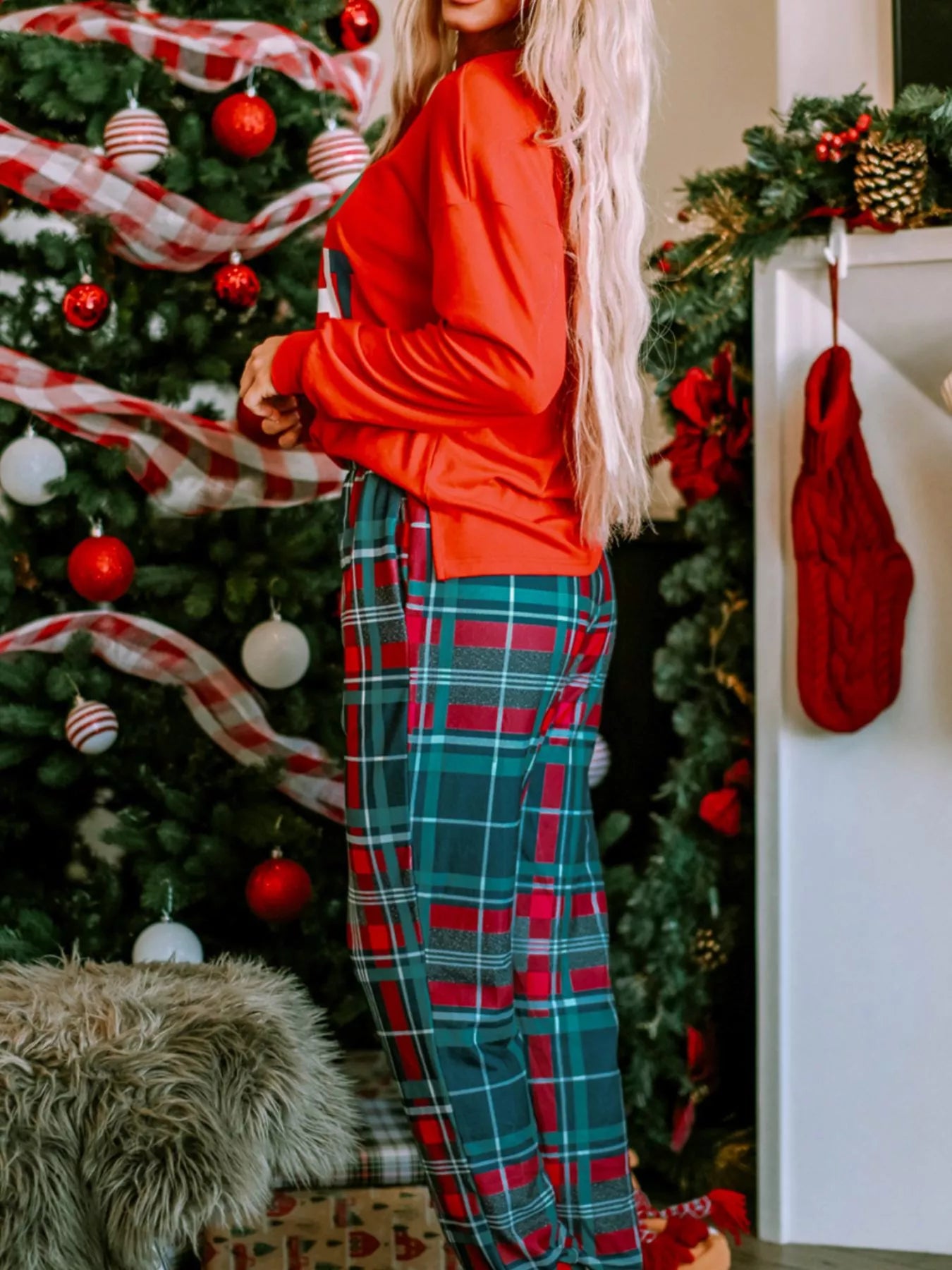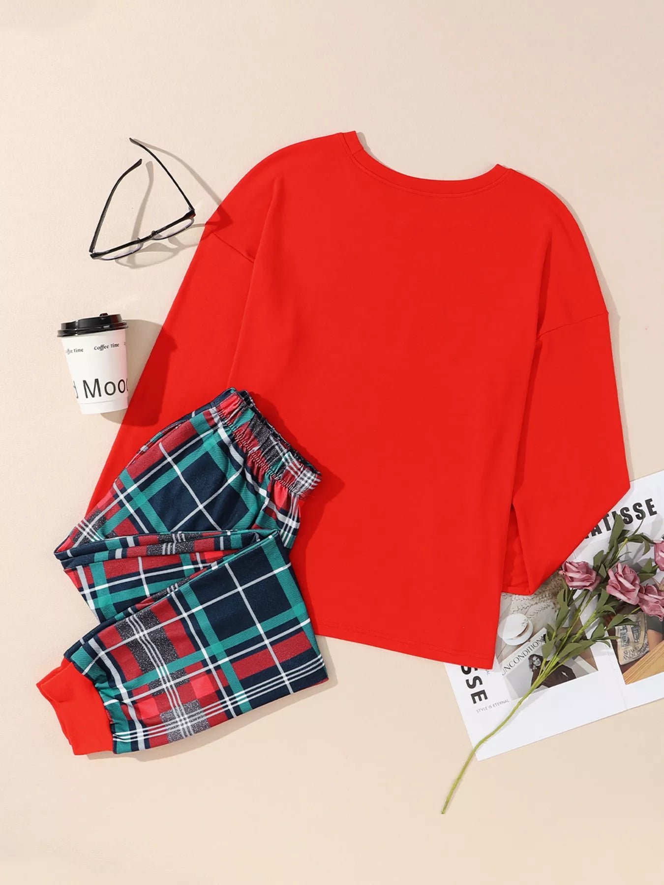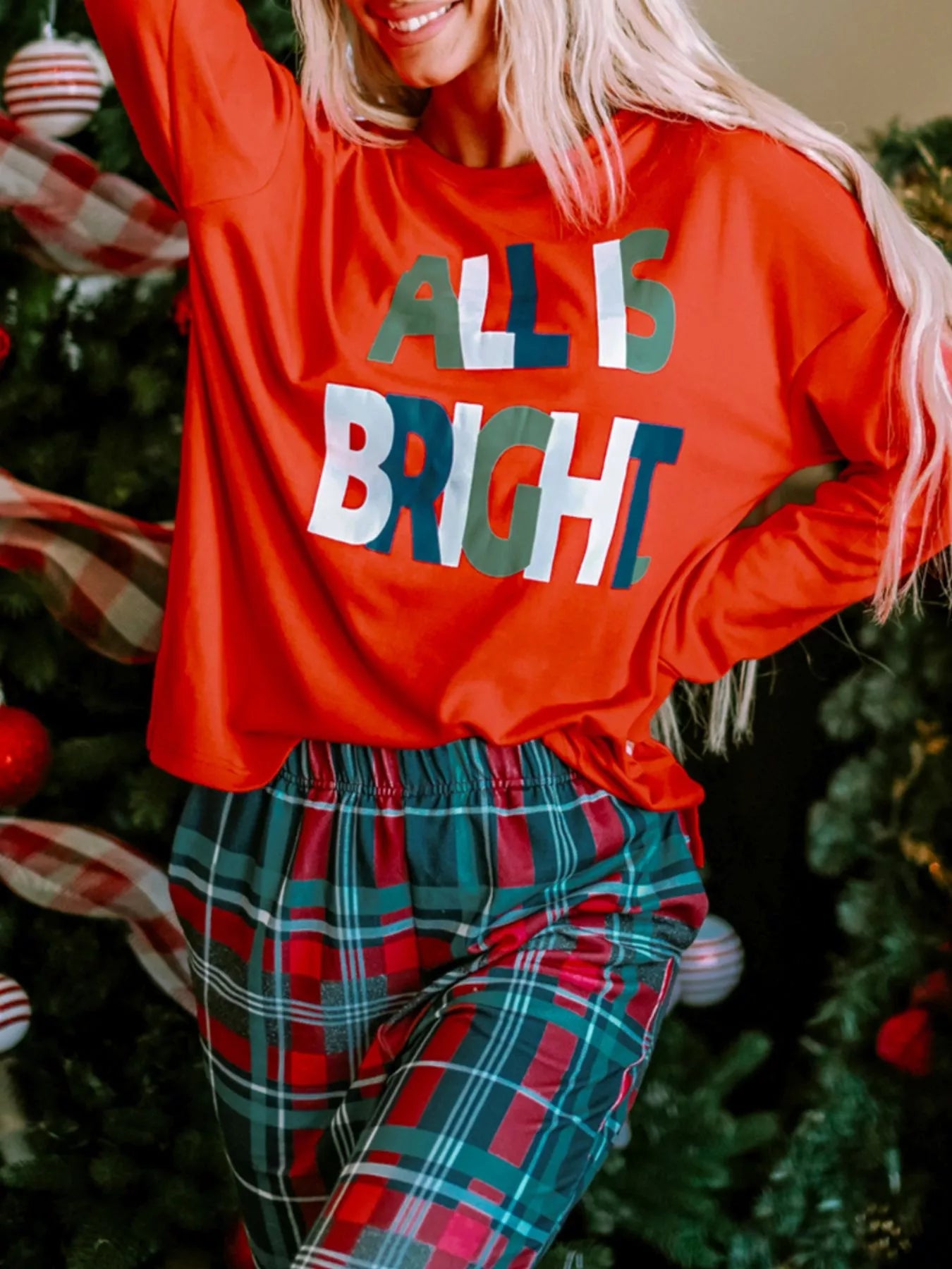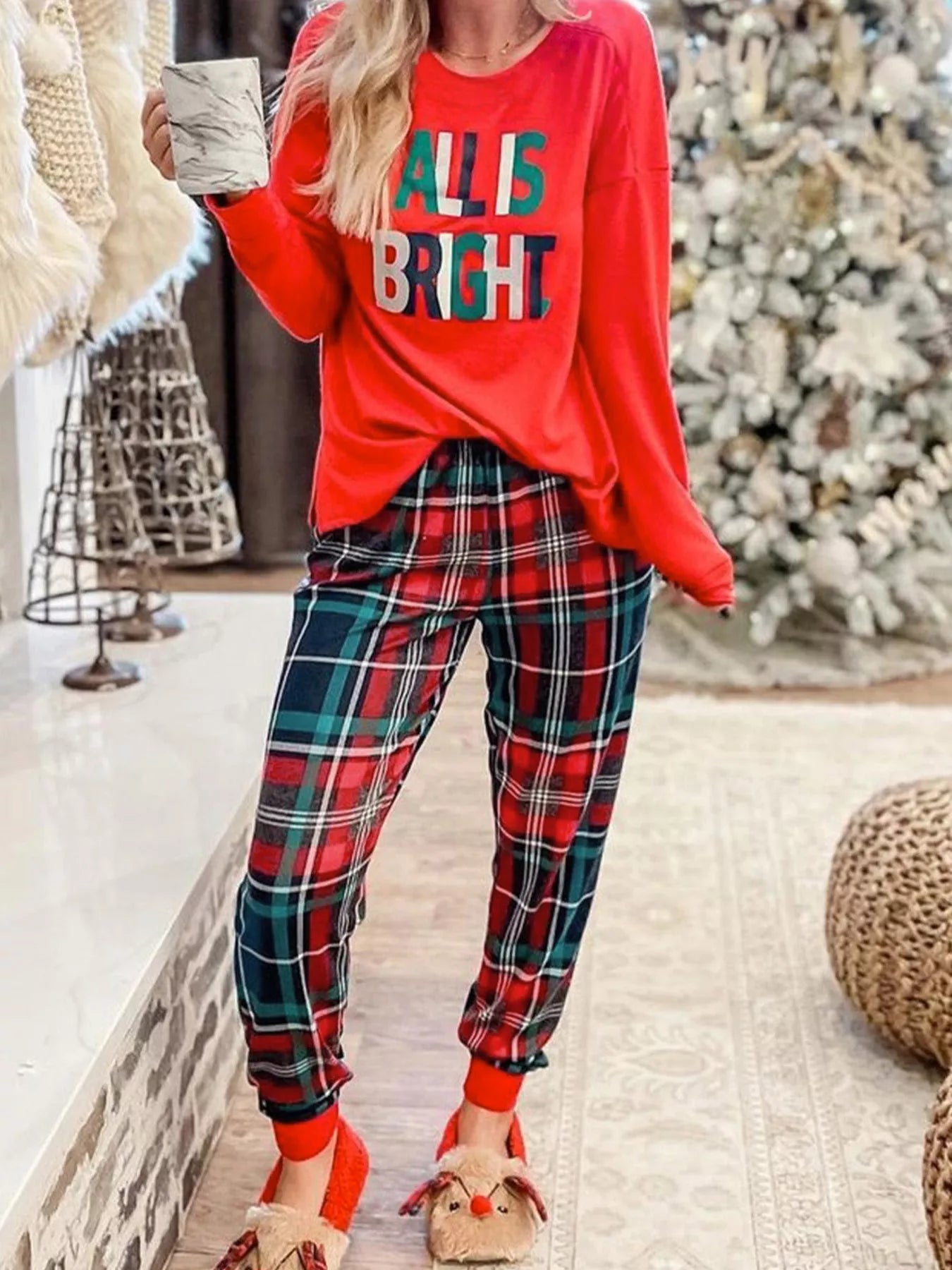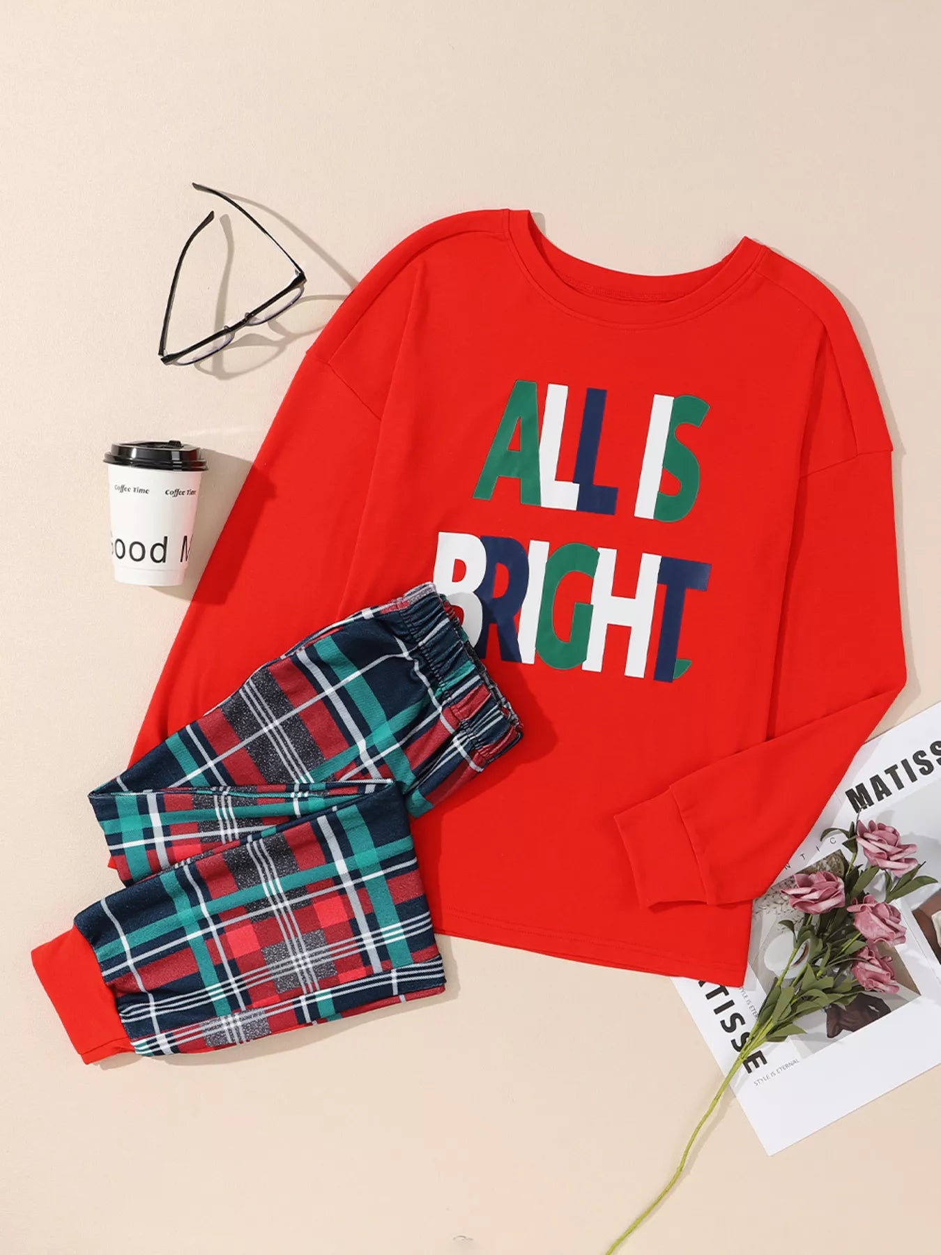 ALL IS BRIGHT Graphic Christmas Plaid Pajamas Set