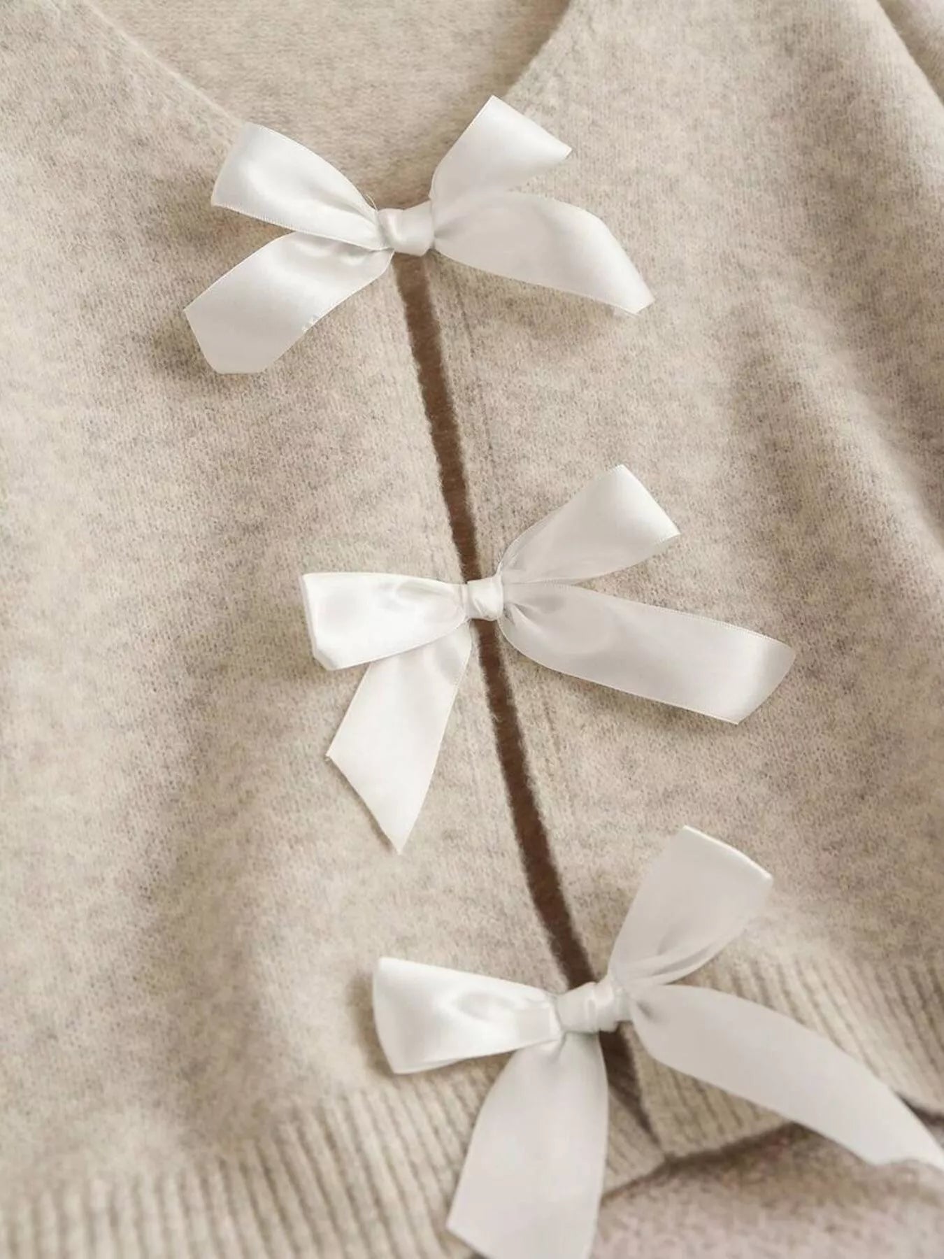 Bow-knot Front V-Neck Knit Cardigan/Top