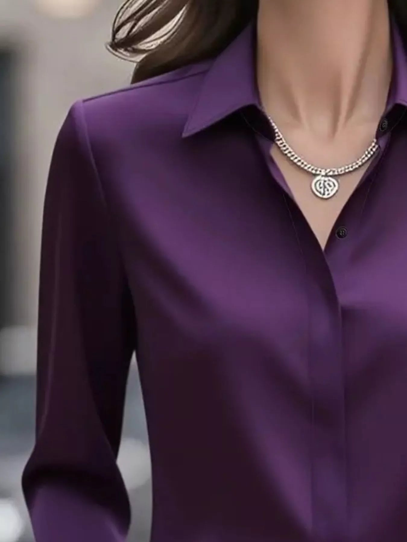 Satin Collar Long Sleeve Blouse/Top