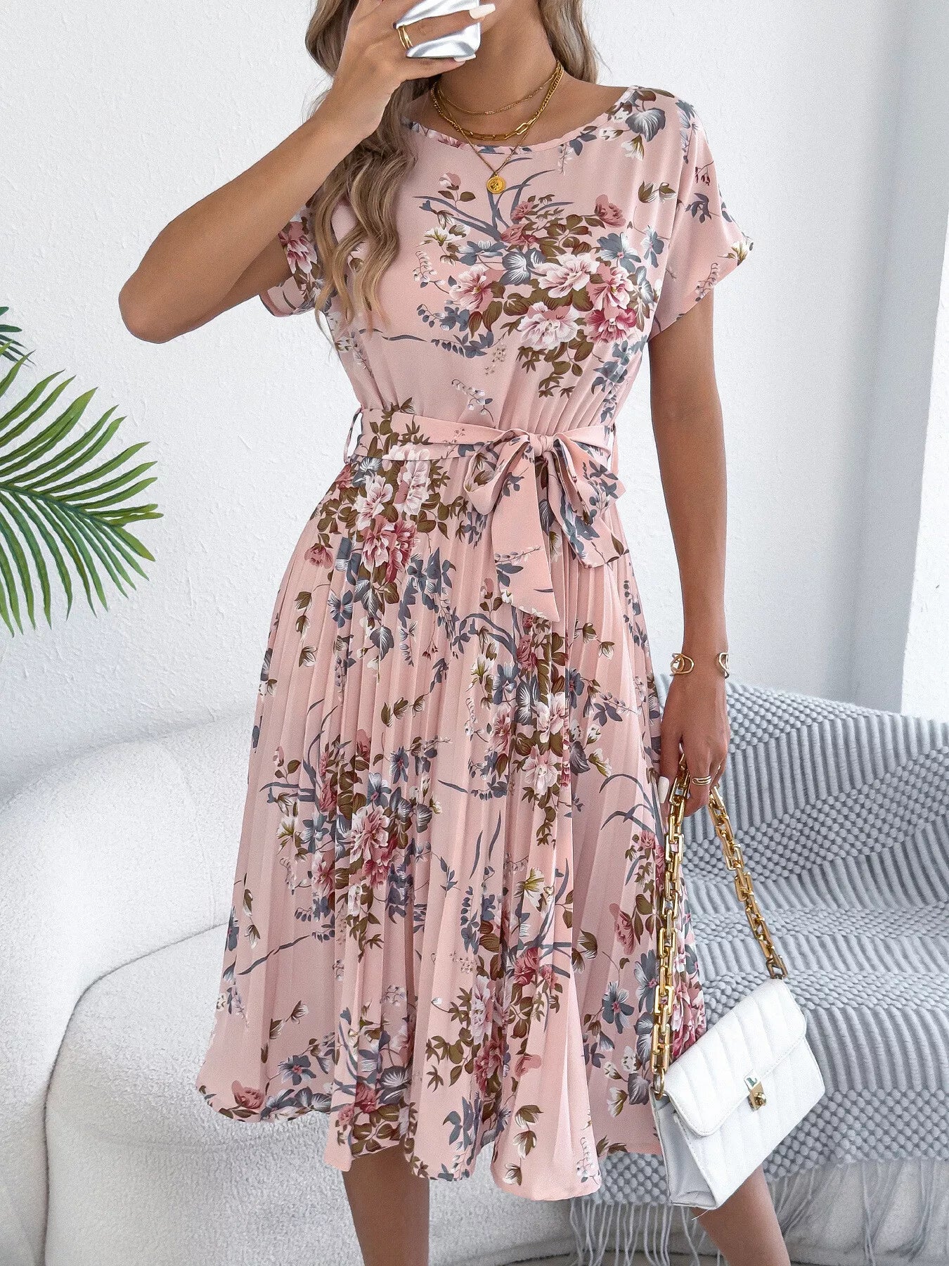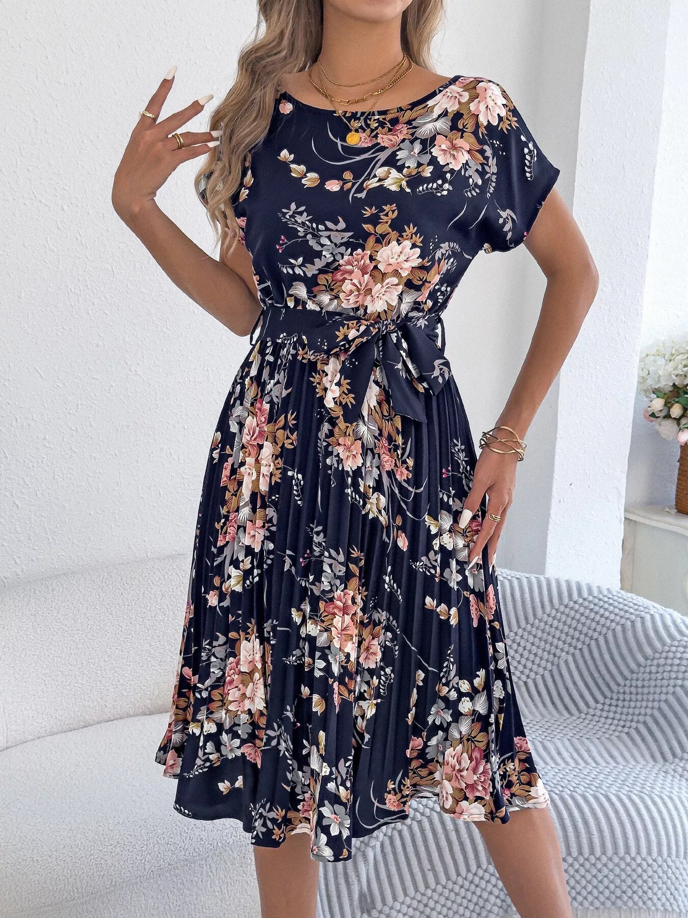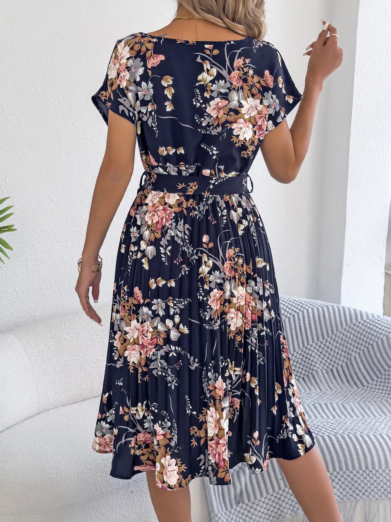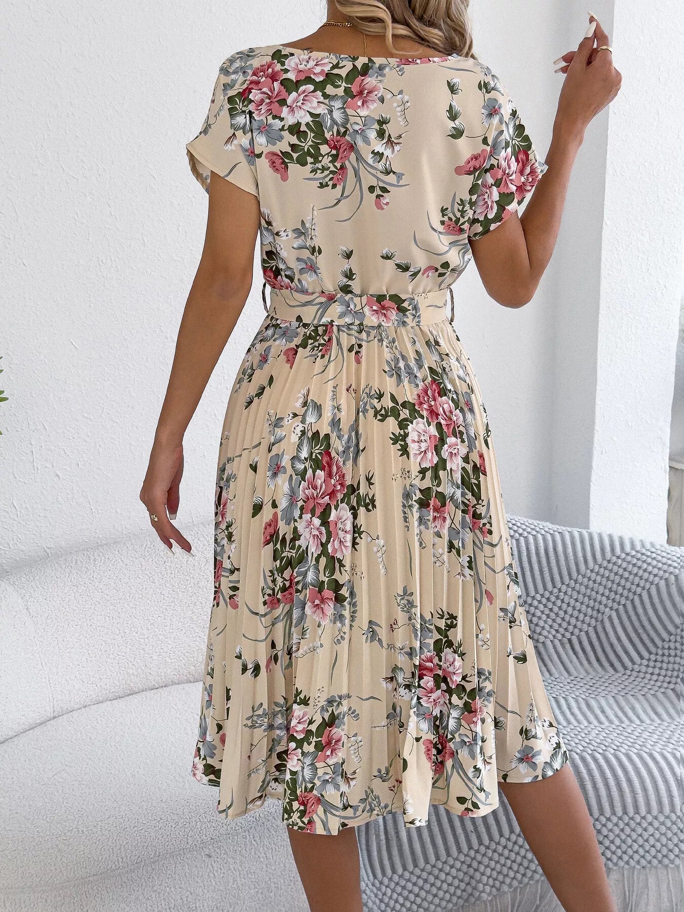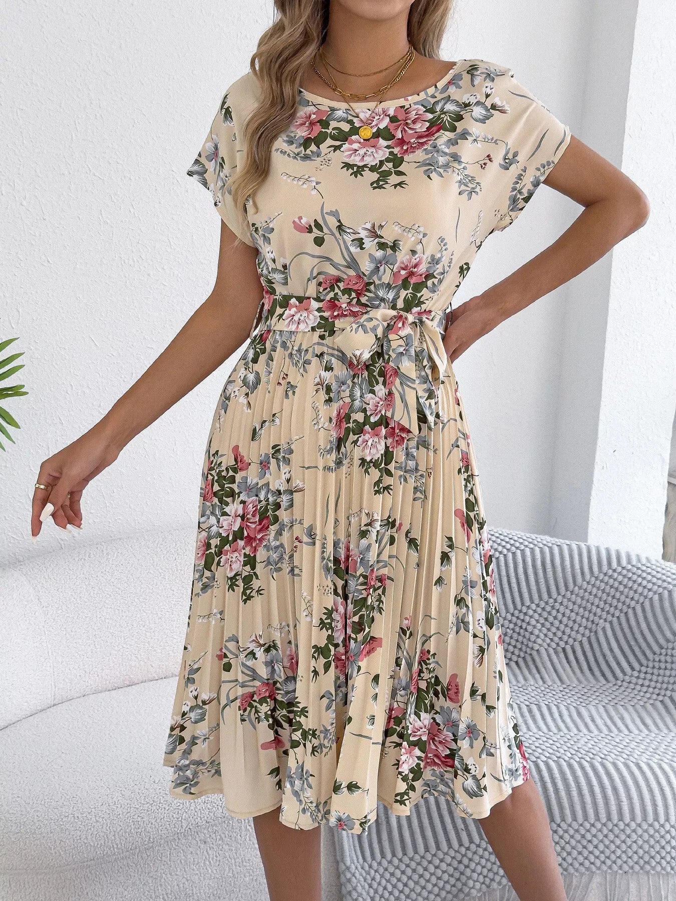 Smocked Floral Scoop Neck Flounce Sleeve Blouse/Top