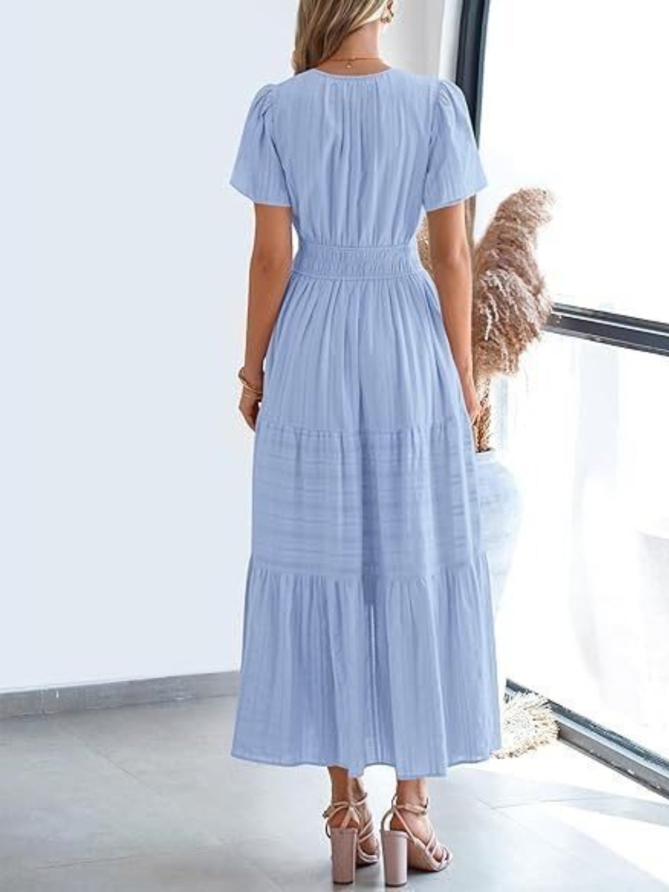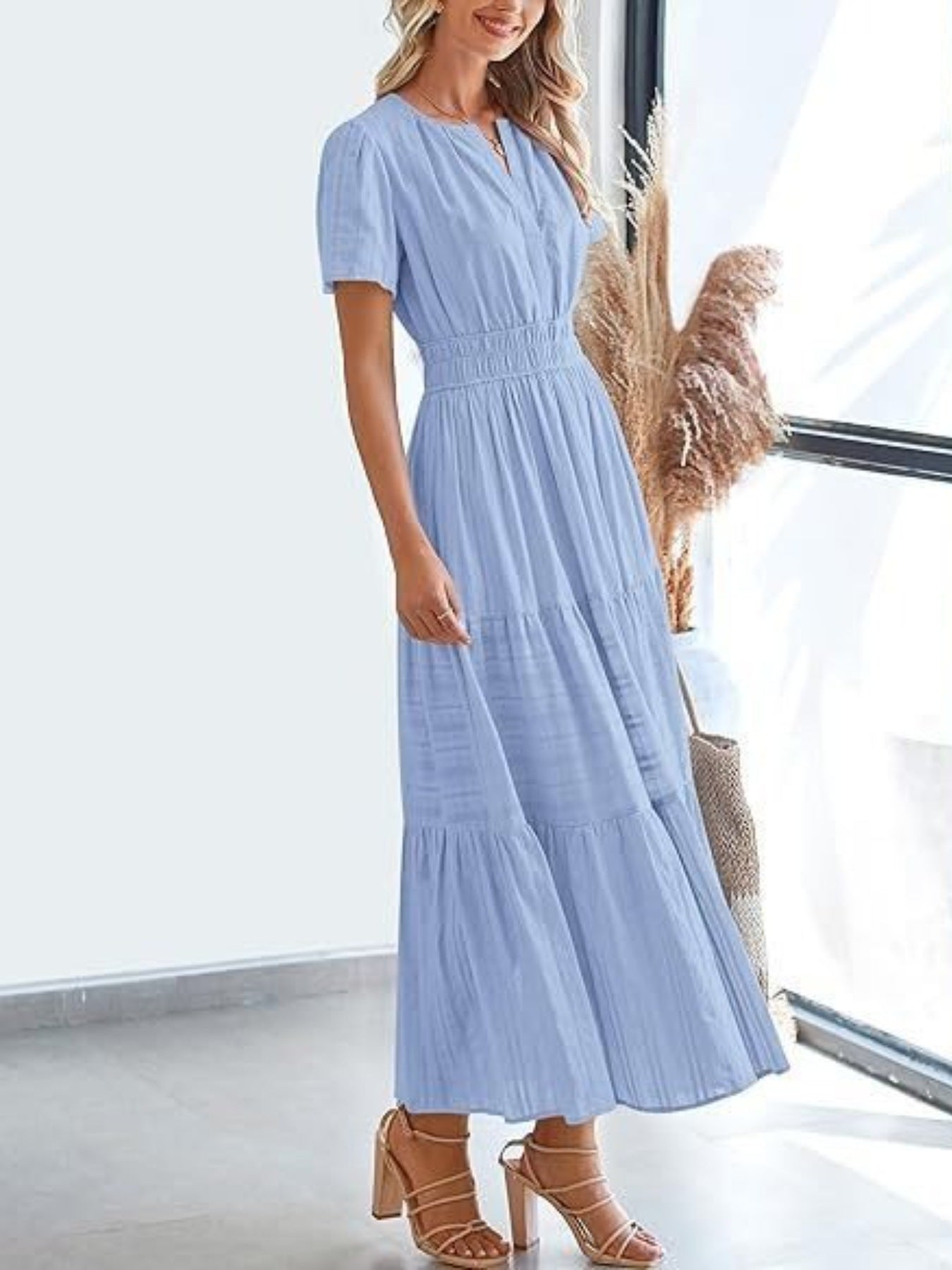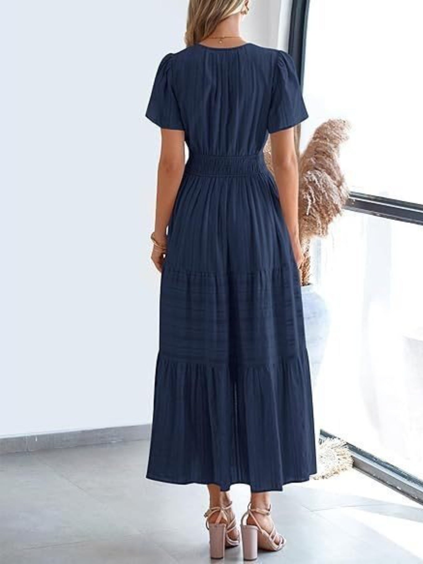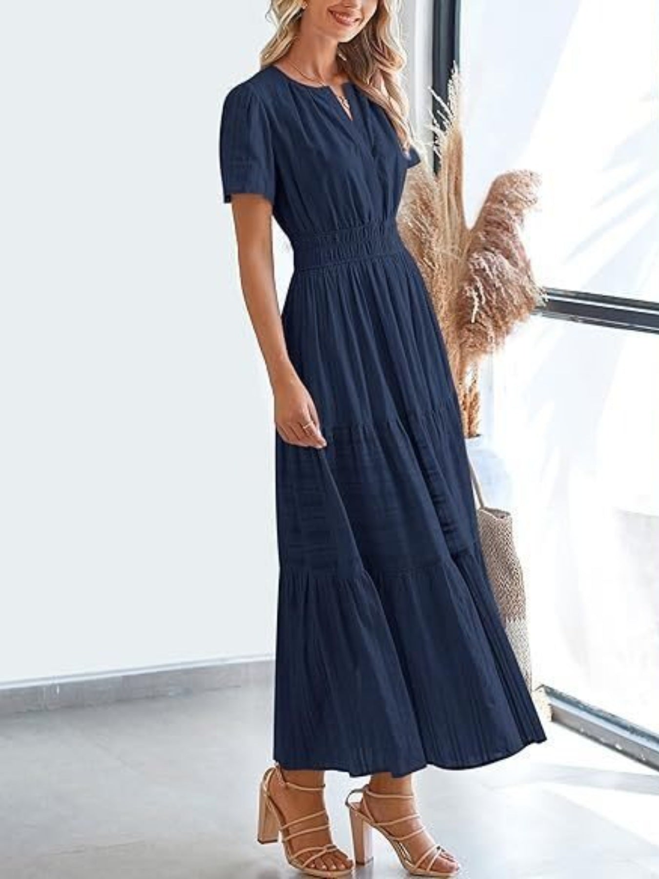 Tiered Notched Short Sleeve Dress