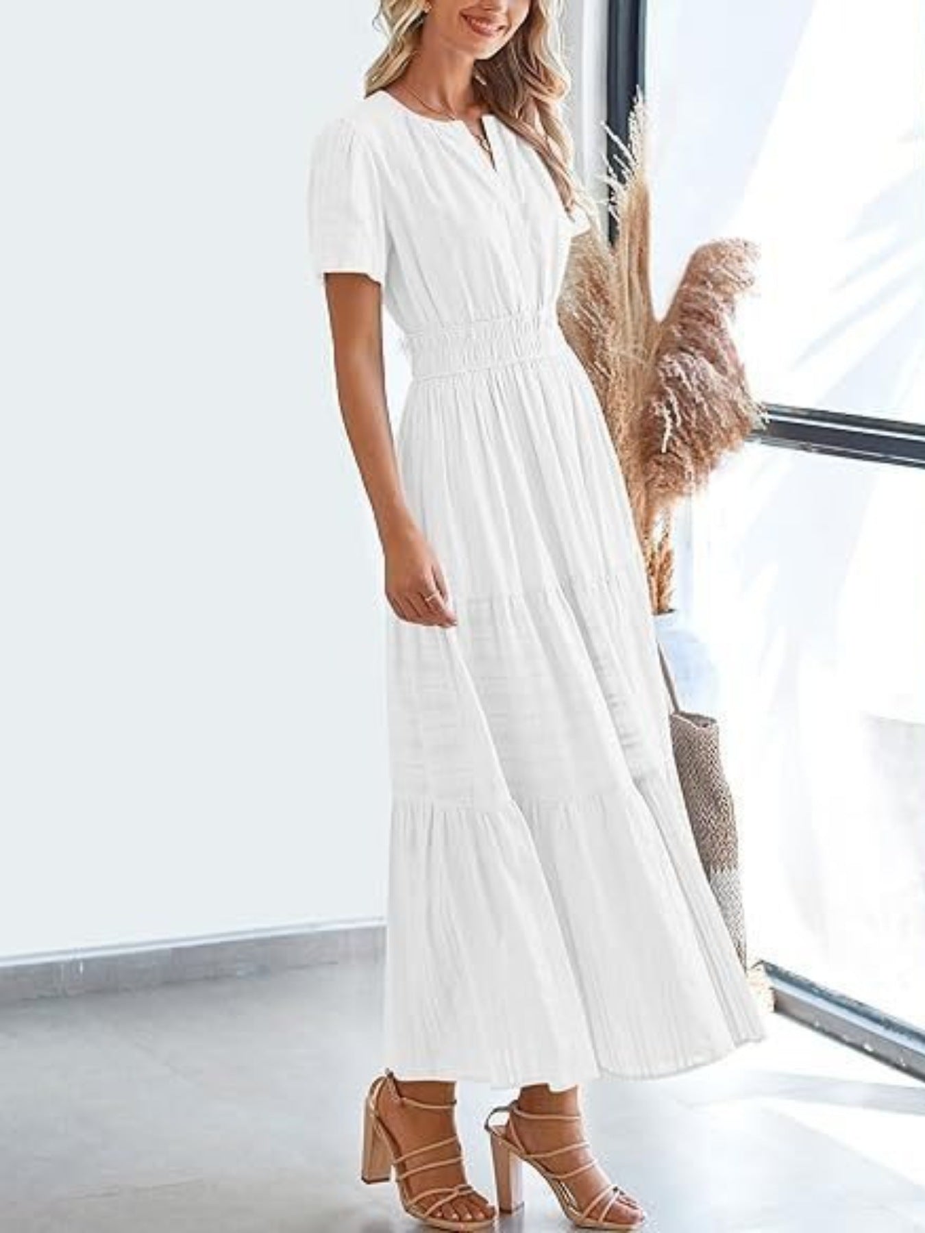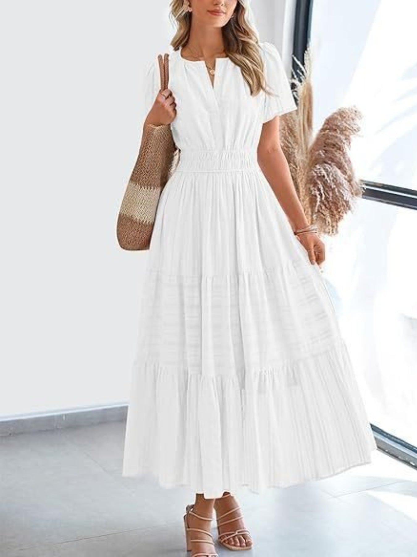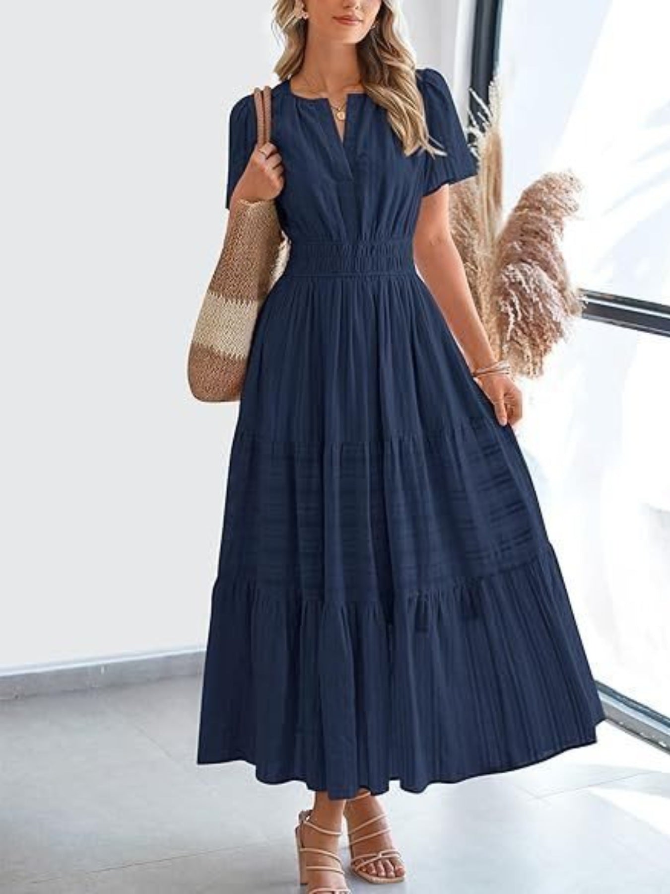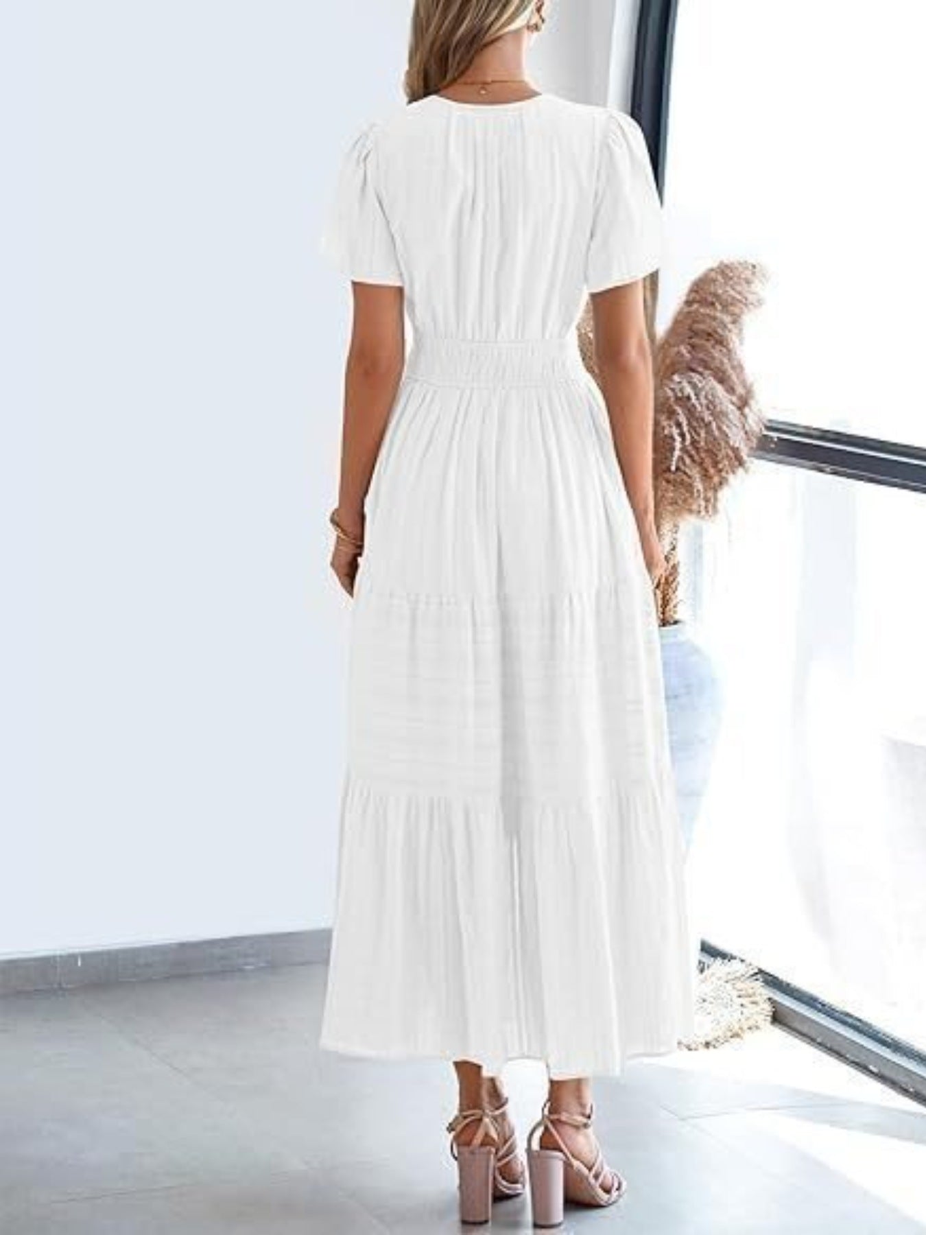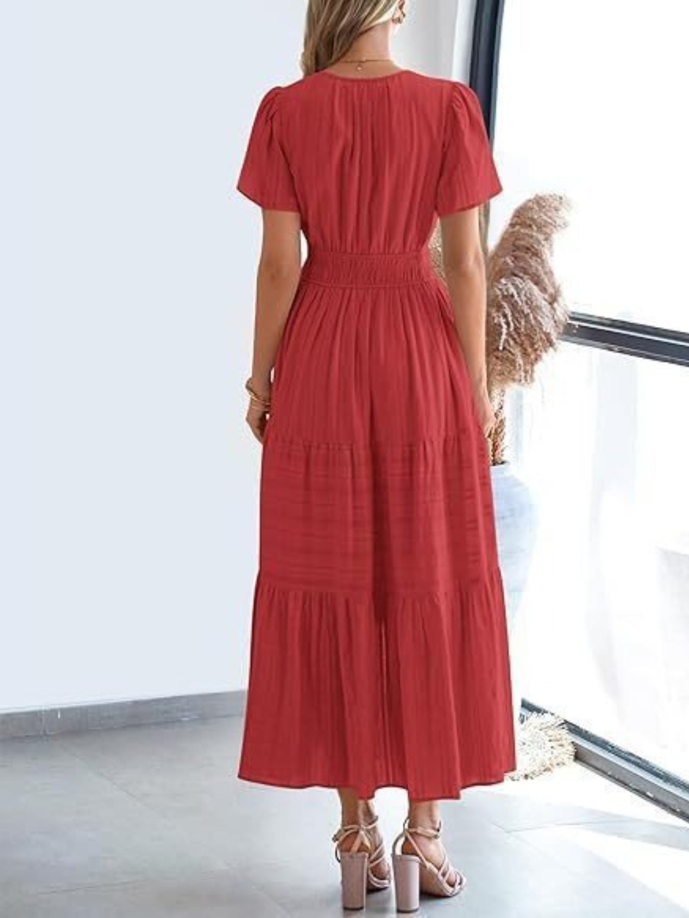 Tiered Notched Short Sleeve Dress