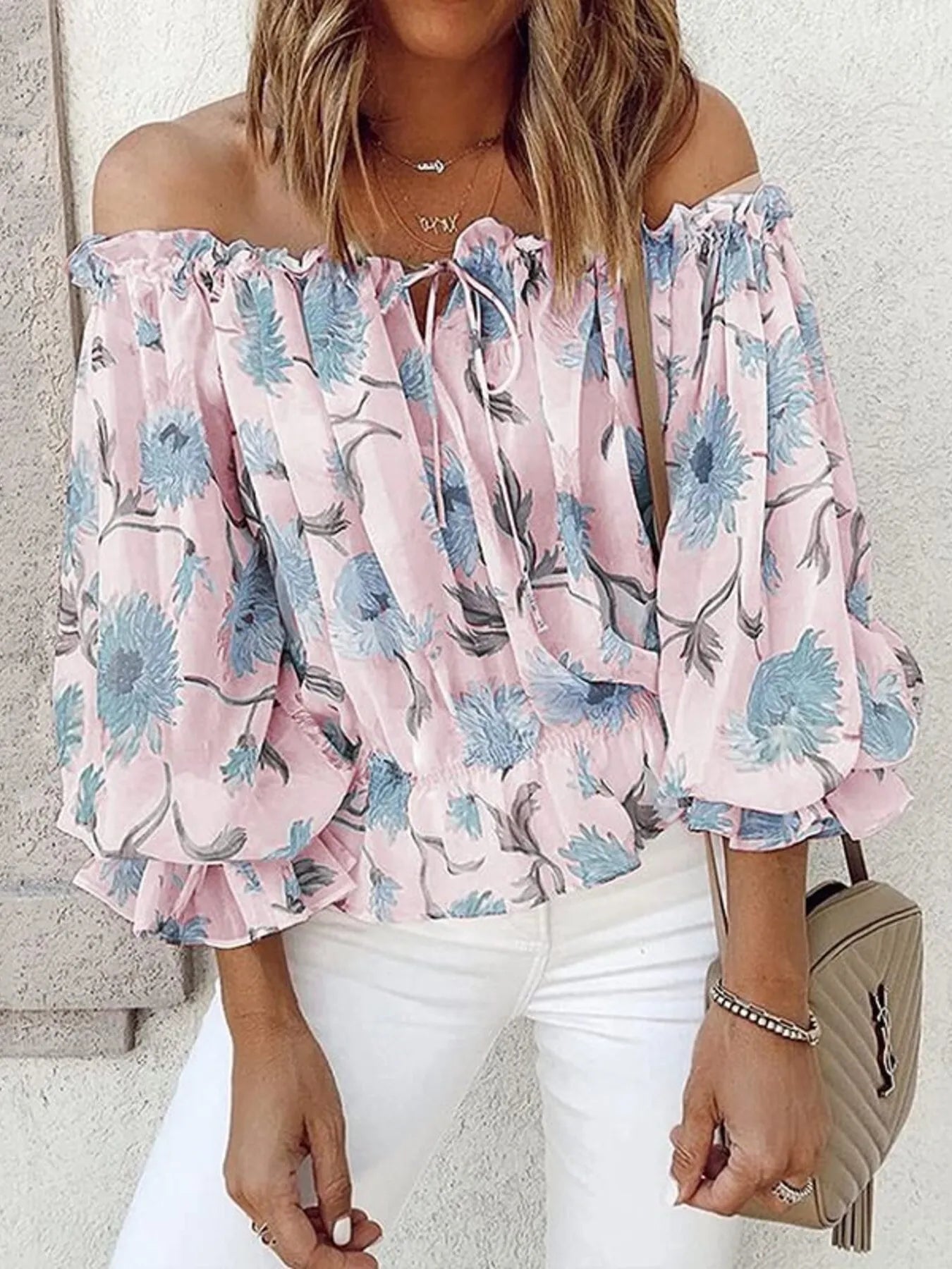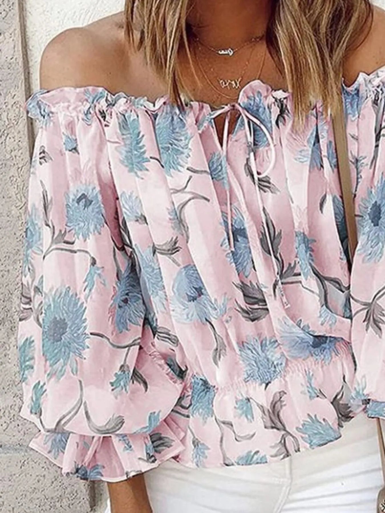 Off-Shoulder Floral Print Blouse/Top