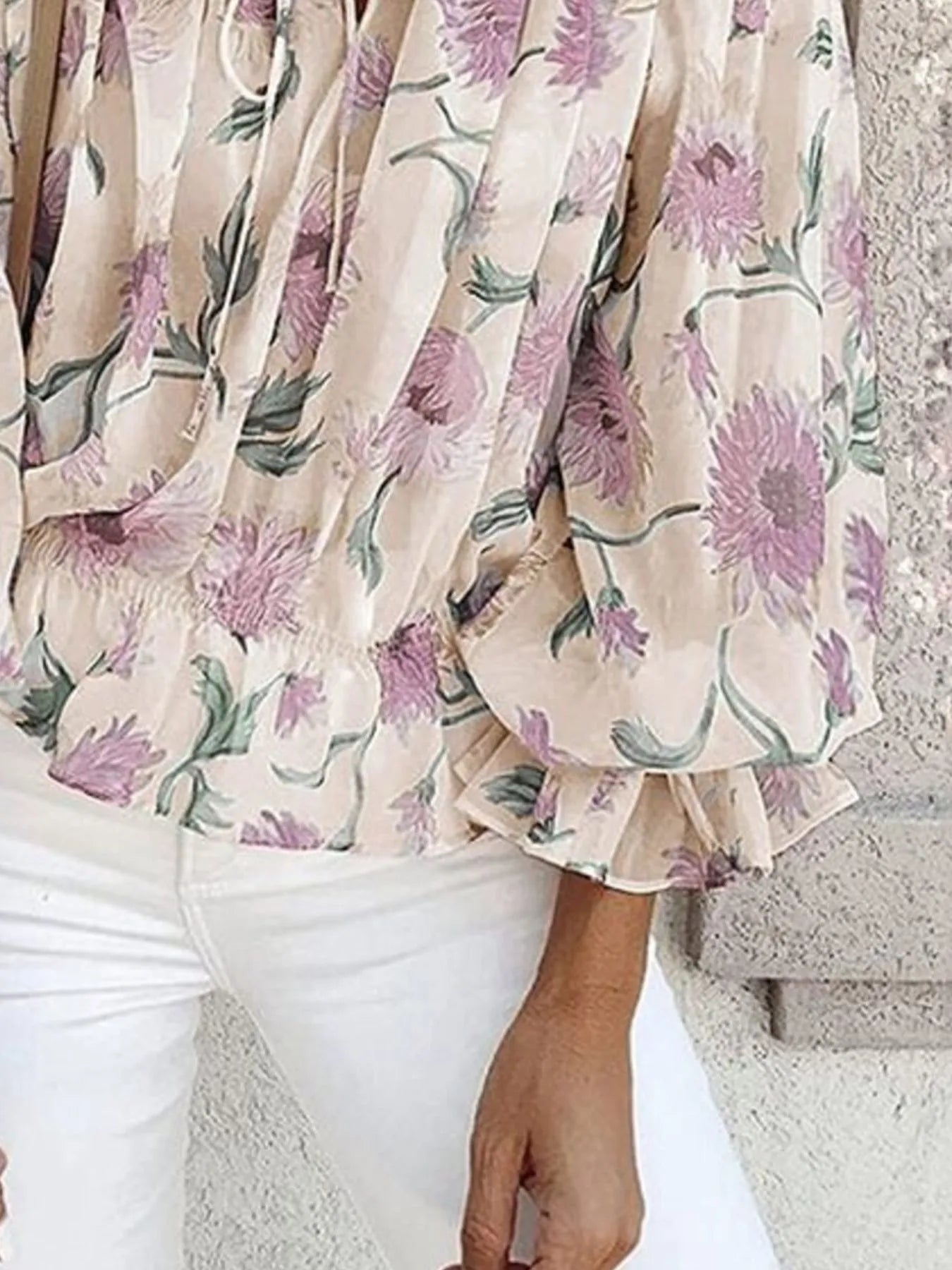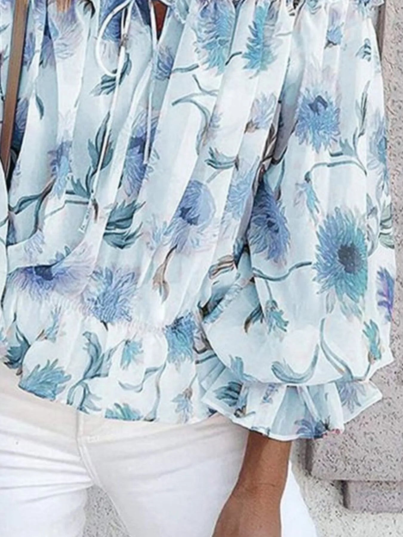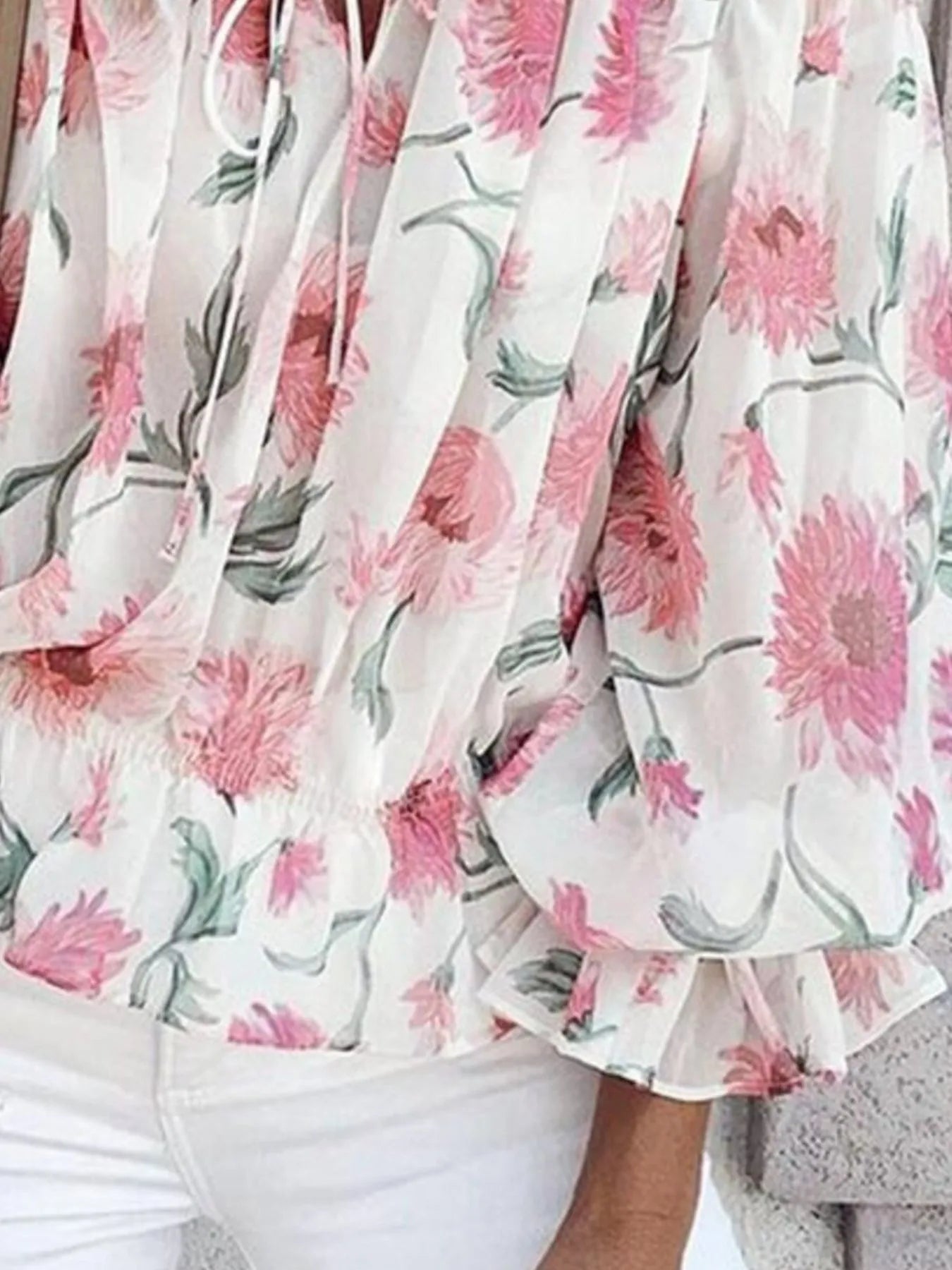 Bow Back Floral Print Ruffle Sleeve Blouse
